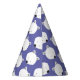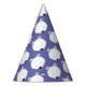 Gorras fiestas de osos polares con un patrón de caras de oso polar personalizado sobre un fondo morado.