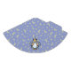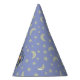 Viejo mago con capa azul mirando la bola mágica de cristal.