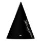 A fierce looking dark gray and black pussy cat wearing a leather hat with steampunk brass on it. A bronze feather tops the cock-eyed hat. This beautiful feline is wearing a golden or amber lensed monocle giving one eye a bronze tone, Around the cats neck hangs a brass trinket of some kind adding to the overall Steampunk attire.