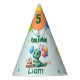 Top off your dino-themed with these playful Baby Dino Birthday Party Hats! That hat features an adorable baby dinosaur design surrounded by colorful balloons, confetti, and party patterns in joyful shades of green, blue, and yellow, add a splash of prehistoric fun that’s guaranteed to make little ones roar with delight!