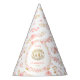 Blush pink and gold floral baby shower party hat for a girl baby shower. Fun and elegant accessory perfect for guests, photos, and celebration activities. 🌸🎀🎉