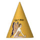 Este gorra fiesta de papel es un amarillo brillante con un hada rubia de bonito con alas de mariposa monarca. Personalizar el texto Feliz Cumpleaños con la plantilla.