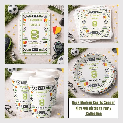 Boys Modern Sports Soccer Kids 8th Birthday Party Diseñado por Oussama