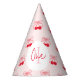 ¡Encima de tu celebración con este adorable Gorra de la fiesta de cumpleaños! Con una paleta de colores dulce rojo y rosa, encantadores ilustraciones de cerezo y vibrantes vibraciones retro, es el accesorio perfecto para un festín de cumpleaños perfecto.