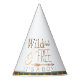 Sombreros de baby shower tribales con estilo libre y salvaje y cuernos rústicos y flecha en un fondo de diseño indio azteca tribal. Puedes agregar tu texto para personalizar, eliminar todo el texto y cambiar el color de fondo.