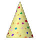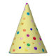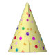 Confeti multicolor sobre Gorra Fiesta de fondo amarillo.