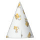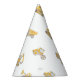 The perfect construction birthday party hat for your construction birthday. The construction birthday party hat design has a white background with a pattern of consturction trucks in yellow.