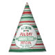 Celebra el tiempo de diversión juntos en casa en la cocina con gorras personalizados de papel fiesta de Holiday Baking Team de rayas rojas y verdes. Todo el texto es sencillo para el personalizar. El diseño presenta rayas verticales rojas, verdes y verde azuladas, hojas y bayas lindas y huecas, clavija rodante, nombre familiar e infantil, y título opcional divertido. Perfecto para Navidades decoraciones de intercambio de galletas y favores de fiesta. Hace una idea graciosa de regalo para un amigo de un cocinero panadero o pastelero, o para cualquiera que ame hacer (o simplemente comer) productos horneados por Navidad, galletas, pasteles, panes, etc. Feliz Navidad!