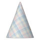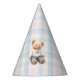Estos sombreros de fiesta tienen un diseño atemporal de osito de peluche con acentos de cuadros rosados y azules, perfecto para una celebración coordinada del primer cumpleaños Beary de gemelos.