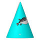 Gorra de la fiesta de cumpleaños con un pez personalizado haciendo un deseo soplando una vela de cumpleaños.