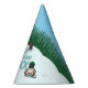 Cute penguins on Christmas party paper hats. Use "Personalize this template" to change the "Merry Christmas! 20XX" text & year and create a unique, customized party accessory. Featuring four cheeky penguins having a snowball fight, wrapped up for the snow in Christmas jumpers, scarves and woolly hats. One hitting another with a snowball, another wearing all the warm knitted Xmas clothes available, and a fourth wearing a balaclava and sitting on snowballs as if they're eggs. A playful item for Christmas, winter, or penguin fans.