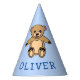 Cute Teddy Bear Toy Blue Kid Gorra de la fiesta de cumpleaños. Gorras fiestas de cumpleaños para niños. Dibujo de juguete de oso de peluche marrón y un nombre en azul - personalizar con tu nombre y hacer una fiesta de cumpleaños única para todos.