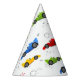 Dos Gorras Fiestas Fiestas personalizados de Carreras rápida para niños de 2º cumpleaños presentan los coloridos coches de carreras. Fabuloso para las celebraciones de cumpleaños de los niños. Diseñado por Evco Studio www.zazzle.com/store/evcostudio