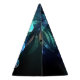 Dos libélulas transparentes, luminosas, turquesas, dibujadas de forma artística sobre el fondo nocturno con algas lacustres luminosas y luciérnagas. Flauta de dragón resplandeciente.