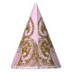 Gorras de la fiesta de cumpleaños de la princesa con bonito rosa y oro una vez con un texto estilizado en un fondo de bonito rosa y oro.