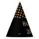 Feliz 2019 y golden polka puntos sobre el Gorra Fiesta de fondo negro. Feliz 2019 listo para ser personalizado. ¡Feliz Año Nuevo!