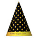 Feliz Año Nuevo y puntos dorados de polka sobre el Gorra Fiesta de fondo negro. Feliz Año Nuevo puede ser personalizado. ¡Feliz Año Nuevo!