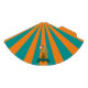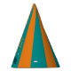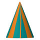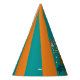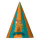 Adorables gorras divertidos de cumpleaños para alegrar a tu fiesta. Sobre un fondo naranja el diseño comienza desde arriba con Feliz Cumpleaños en texto verde y amarillo con un pastel con hielo rosa y tres velas encendidas al lado del H en feliz. Debajo del texto hay una linda y graciosa papa marrón con los brazos pegados y una gran sonrisa. Al otro lado de la papa hay un cartel azul con una plantilla para agregar su nombre a personalizar. Por último, tres estrellas amarillas están repartidas por la papa.