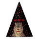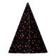 Este gorra fiesta personalizado tiene un tigre asiático de apariencia feroz con rayas negras delineadas en rojo sobre un fondo negro con puntos rojos. Personalizar el texto Feliz Cumpleaños con la plantilla.