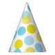 Gorras fiestas coloridos y festivos con puntos de confeti azul y amarillo. Esto será perfecto para graduaciones, fiestas de cumpleaños y otros eventos. ¡Un acento divertido y colorido para tu evento!