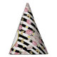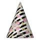 Divertido y festivo gorra fiesta con su foto y texto personalizado rodeado por un falso anillo de oro de moda y ambientado contra un patrón de rayas blancas y negras acentuado con mariposas doradas, rosas rosas rosas rosas y maricas blancas. Perfecto para cualquier fiesta de cumpleaños de edad, ducha de novia o bebé, fiesta de retiro, graduación y más.