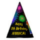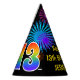 Este divertido y vibrante diseño gorra de fiesta de cumpleaños presenta un colorido patrón inspirado en los estallidos de fuegos artificiales de celebración, junto con el número "13" que tiene un espectro multicolor inspirado en el arcoiris o un patrón gradiente. También incluye un nombre personalizado y un mensaje de evento, como un saludo de cumpleaños "feliz". Un gorra de papel con tema de cumpleaños como este podría ser usado por los asistentes a una fiesta de cumpleaños que se lleva a cabo para celebrar el décimo tercer cumpleaños de alguien. [~Z0000333]