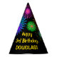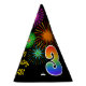 Este divertido y vibrante diseño gorra de fiesta de cumpleaños presenta un colorido estallido de fuegos artificiales de celebración inspirado, junto con el número "3" que tiene un arcoíris multicolor como el espectro o el patrón gradiente. También incluye un nombre personalizado y un mensaje de evento, como un saludo de cumpleaños "feliz". Un gorra de papel con temas de cumpleaños como este podría ser usado por los asistentes a una fiesta de cumpleaños que se lleva a cabo para celebrar el tercer cumpleaños de alguien. [~Z0000333]