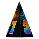 Este divertido y vibrante diseño gorra de fiesta de cumpleaños presenta un colorido patrón inspirado en los estallidos de fuegos artificiales de celebración, junto con el número "37" que presenta un espectro multicolor inspirado en el arcoiris o un patrón gradiente. También incluye un nombre personalizado y un mensaje de evento, como un saludo de cumpleaños "feliz". Un gorra de papel con tema de cumpleaños como este podría ser usado por los asistentes a una fiesta de cumpleaños que se lleva a cabo para celebrar el cumpleaños treinta y siete de alguien. [~Z0000333]