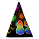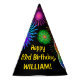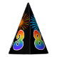 Este divertido y vibrante diseño gorra de fiesta de cumpleaños presenta un colorido estallido de fuegos artificiales de celebración inspirado, junto con el número "83" que presenta un espectro multicolor inspirado en el arcoiris o un patrón gradiente. También incluye un nombre personalizado y un mensaje de evento, como un saludo de cumpleaños "feliz". Un gorra de papel con tema de cumpleaños como este podría ser usado por los asistentes en una fiesta de cumpleaños que se lleva a cabo en celebración del ochenta y tres años de alguien. [~Z0000333]