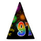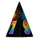 Este divertido y vibrante diseño gorra de fiesta de cumpleaños presenta un colorido patrón inspirado en los estallidos de fuegos artificiales de celebración, junto con el número "97" que tiene un multicolor como el espectro o el patrón de gradiente. También incluye un nombre personalizado y un mensaje de evento, como un saludo de cumpleaños "feliz". Un gorra de papel con temática de cumpleaños como este podría ser usado por los invitados en una fiesta de cumpleaños que se lleva a cabo en celebración del 97 cumpleaños de alguien. [~Z0000333]