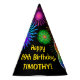 Este divertido y vibrante diseño gorra de fiesta de cumpleaños presenta un colorido estallido de fuegos artificiales de celebración inspirado, junto con el número "89" que tiene un multicolor arcoiris como el espectro o el patrón gradiente. También incluye un nombre personalizado y un mensaje de evento, como un saludo de cumpleaños "feliz". Un gorra de papel con temática de cumpleaños como este podría ser usado por los invitados en una fiesta de cumpleaños que se lleva a cabo para celebrar el 89º cumpleaños de alguien. [~Z0000333]