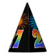 Este divertido y vibrante diseño gorra de fiesta de cumpleaños presenta un colorido estallido de fuegos artificiales de celebración inspirado, junto con el número "27" que tiene un espectro multicolor inspirado en el arcoiris o un patrón gradiente. También incluye un nombre de personalizable y un mensaje de evento, como un saludo de cumpleaños "Feliz". Un gorra de papel con tema de cumpleaños como este podría ser usado por los asistentes a una fiesta de cumpleaños que se lleva a cabo para celebrar el 27 cumpleaños de alguien. [~Z0000333]