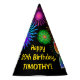 Este divertido y vibrante diseño gorra de fiesta de cumpleaños presenta un colorido estallido de fuegos artificiales de celebración inspirado, junto con el número "20" que presenta un espectro multicolor inspirado en el arcoiris o un patrón gradiente. También incluye un nombre de personalizable y un mensaje de evento, como un saludo de cumpleaños "Feliz". Un gorra de papel con temática de cumpleaños como este podría ser usado por los invitados en una fiesta de cumpleaños que se lleva a cabo para celebrar el vigésimo cumpleaños de alguien. [~Z0000333]