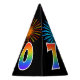 Este divertido y vibrante diseño gorra de fiesta de cumpleaños presenta un colorido estallido de fuegos artificiales de celebración inspirado, junto con el número "70" que presenta un multicolor arcoiris como espectro o gradiente. También incluye un nombre personalizado y un mensaje de evento, como un saludo de cumpleaños "feliz". Un gorra de papel con tema de cumpleaños como este podría ser usado por los asistentes en una fiesta de cumpleaños que se lleva a cabo en celebración del septuagésimo cumpleaños de alguien. [~Z0000333]