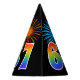 Este divertido y vibrante diseño gorra de fiesta de cumpleaños presenta un colorido patrón inspirado en los estallidos de fuegos artificiales de celebración, junto con el número "67" que presenta un multicolor como el espectro o el gradiente. También incluye un nombre personalizado y un mensaje de evento, como un saludo de cumpleaños "feliz". Un gorra de papel con tema de cumpleaños como este podría ser usado por los asistentes a una fiesta de cumpleaños que se lleva a cabo en celebración del 67 cumpleaños de alguien. [~Z0000333]