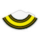 Este divertido y deportivo diseño presenta una banda ancha de color amarillo brillante con rayas flotantes de carreras marrón dorado. El color de fondo es un verde intenso y profundo del bosque.