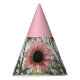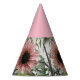 Este impresionante gorra fiesta presenta una hermosa fotografía de un girasol rosa pálido. El girasol es de color rosa natural y los pétalos tienen un anillo exterior rosa pálido y un anillo interior rosado más oscuro. El medio donde están las semillas es negro. Esta fotografía fue tomada en un jardín.