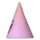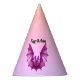 This paper party hat is shades of light purple and pink with a Gothic dark pink spooky bat with wings spread in flight. Customise the Happy Birthday text with the templates.