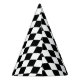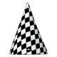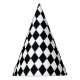 This party hat is shown in a black and white color harlequin diamond pattern.