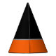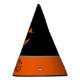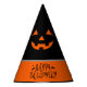 This party hat is shown in a Halloween pumpkin face print.