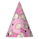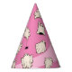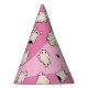 Gorras de fiesta de Halloween con un fondo rosado gruñón, un grupo de fantasmas retro y arañas espeluznantes.