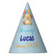 Let’s pawty! Celebrate your little boy's 1st birthday with these adorable “Happy Puppy” party hats. Featuring a kawaii-style design, it showcases a sweet puppy holding balloons alongside a birthday cake topped with a single candle. This party hat is the perfect accessory for a fun and joyful first birthday celebration. Designed by Best Baby Gifts - given with love.