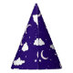 Night sky party hat with clouds moon and stars, dark blue sky, for parties, birthdays, anniversaries, baby showers and all occasions