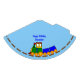 Un tren está bajando por las vías bajo su mensaje personalizado (se muestra: Feliz cumpleaños Alexander). Cambiar el número del tren a la edad del niño (se muestra: 3). El fondo es azul cielo.