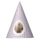 Make your baby’s first birthday even more joyful with this personalized lavender gingham paper party hat! Decorated with a custom photo, this hat brings a soft pastel touch to your celebration. The delicate gingham pattern and customizable name make it a sweet keepsake and a perfect match for any pastel or vintage-style birthday theme.