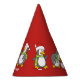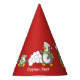 Pequeños íconos personalizados de pingüino, agradables y felices, usando sombreros de santa y pañuelos y jugando con bolas de nieve.