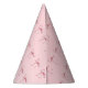 Soft pink party hats featuring an elegant repeating bow pattern with a delicate watercolor look. Perfect for girls’ birthday parties, pastel celebrations, princess themes, chic kids events, and stylish party table décor. A timeless and customizable design ideal for modern birthday celebrations.