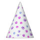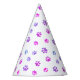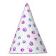 Celebra tu cumpleaños de mascotas con estos adorables gorras fiestas con motivos de pata morada, rosa y azul. El fondo de este diseño es transparente para que puedas cambiar el color del fondo blanco a tu favorito.