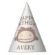 This adorable Slumberkins birthday party hat features the friendly Bigfoot character with a big, cheerful smile, paired with “Happy Birthday” text and a customizable name. The soft, neutral color palette and simple design keep the look warm, playful, and kid-friendly. Bigfoot’s lovable expression wraps around the hat, making it a fun and eye-catching accessory for a child’s birthday celebration. Perfect for party photos and festive moments, this design adds a charming touch inspired by the comforting Slumberkins world.