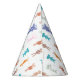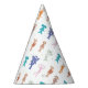 This playful party hat design features an all-over pattern of the beloved Slumberkins characters scattered across a crisp white background. Each character appears in their signature colors—soft blues, warm browns, gentle greens, bright oranges, and deep purples—creating a lively and balanced look. Tiny pastel star accents are sprinkled throughout the pattern, adding a festive touch without overwhelming the sweet, child-friendly aesthetic. The repeating character layout wraps beautifully around the cone shape, making it a fun and coordinated accessory for any Slumberkins-themed birthday celebration. Perfect for bringing the whole character crew into the party in a cheerful and wearable way.